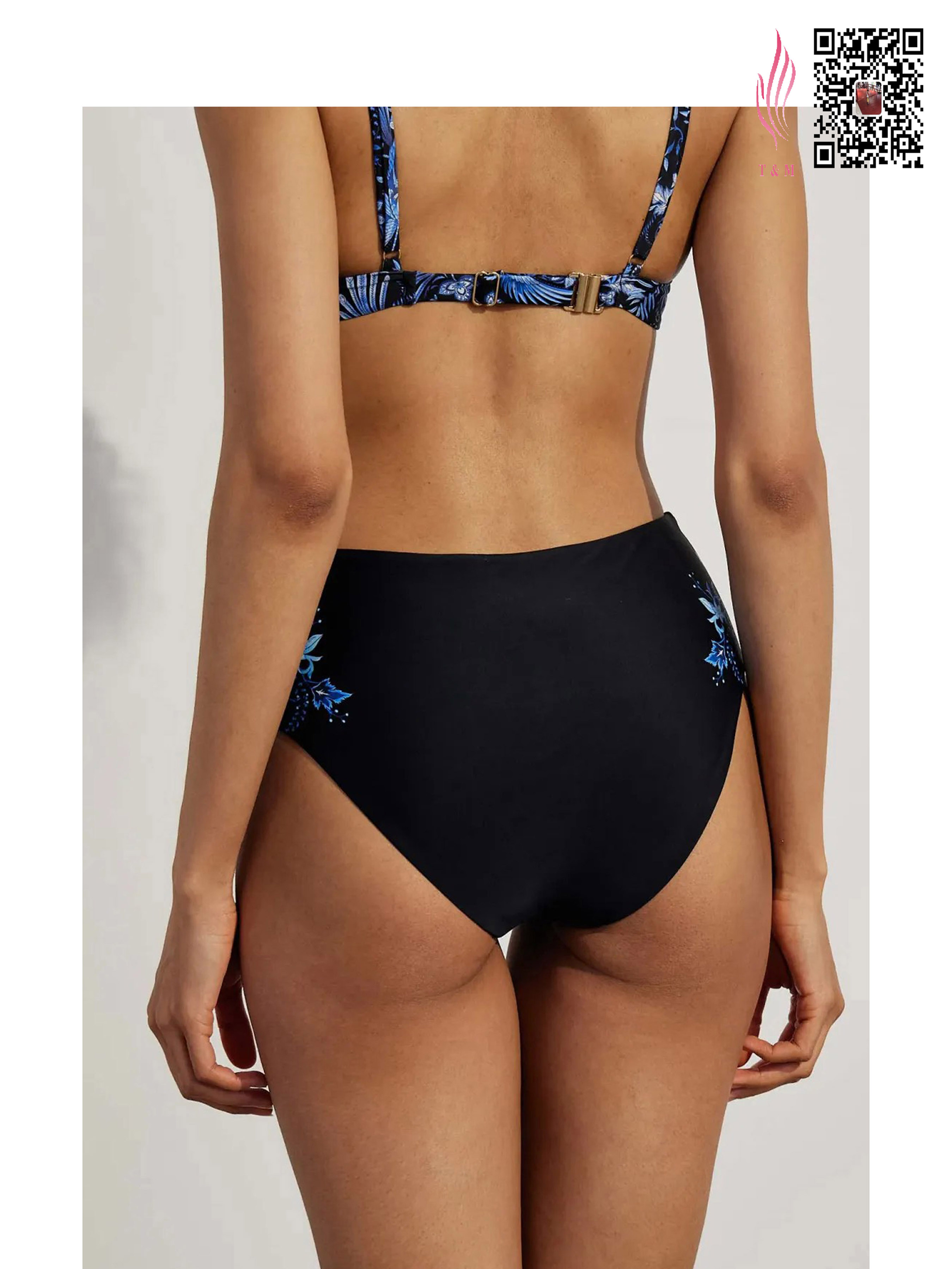 Bottom: A high - waist bottom with placement floral printings for a balanced, eye - catching look.