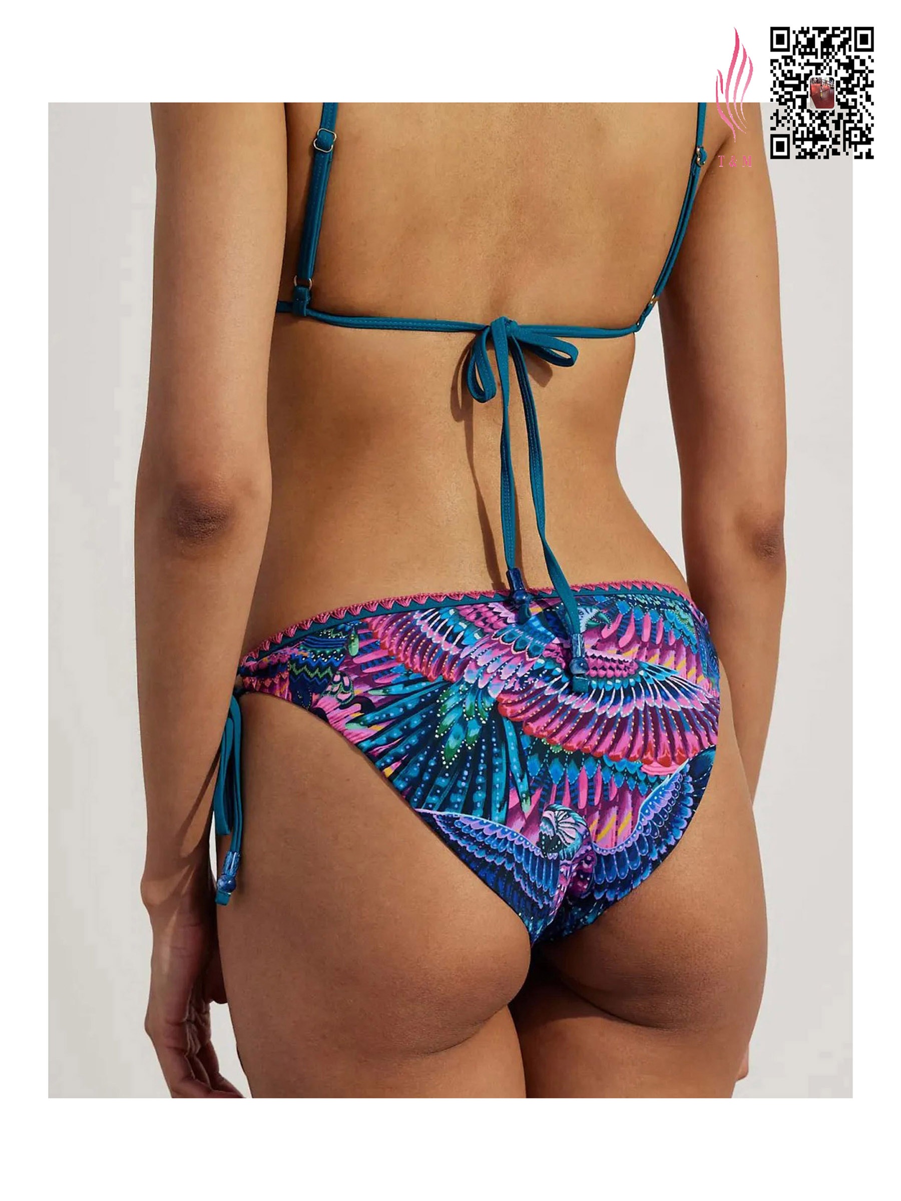 Hand-made crotchet Details: The triangle cups have crotchet trim on the inner side, and the bikini bottoms have it too, adding a unique artisanal touch that elevates the set’s craftsmanship.